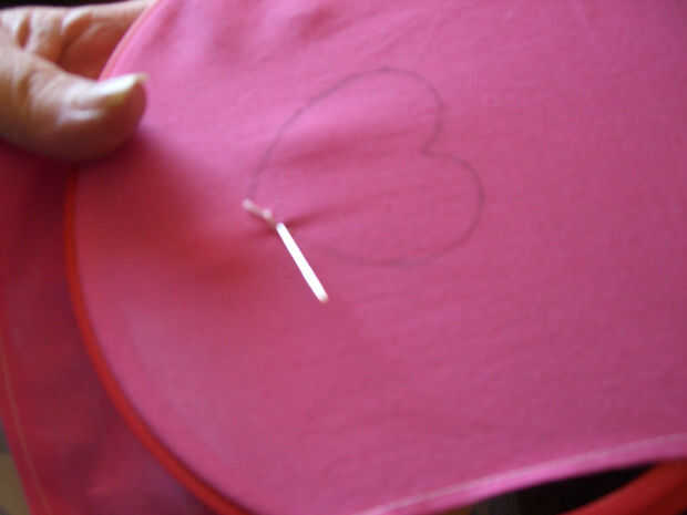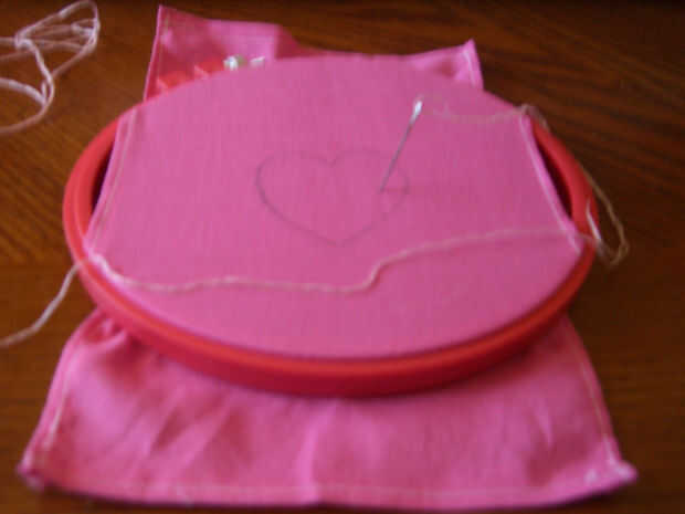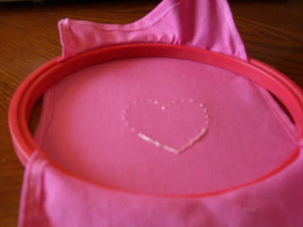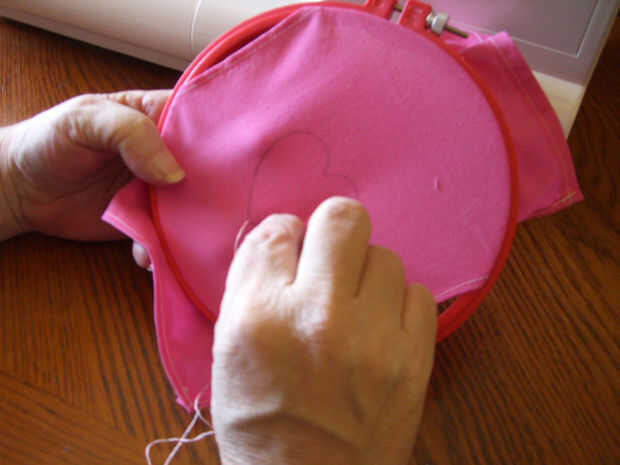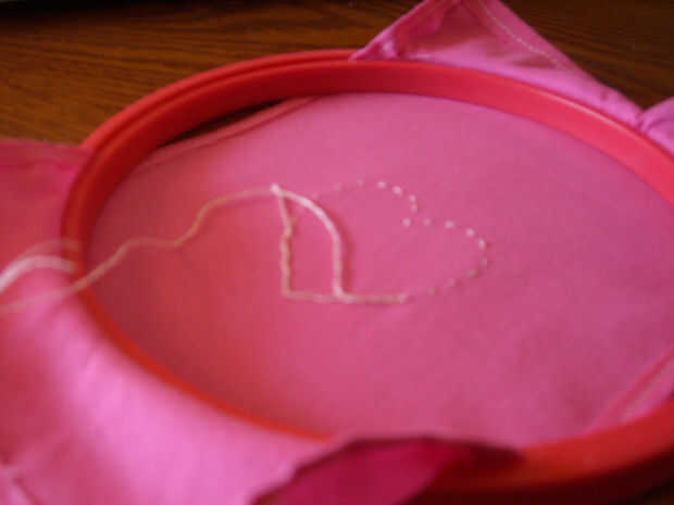 Trabajar su camino en el corazón cuando llegue el trabajo final de la aguja a través de las últimos pocas puntadas justo y luego bajo en la otra dirección. Corte el hilo y la vuelta.