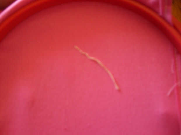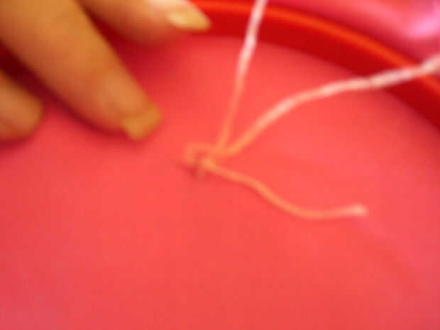 Como coser coger la cola en los puntos de sutura en lugar de un nudo. Inserte la aguja por encima de la puntada en la parte superior y traer para arriba de la espalda justo encima de la puntada anterior.