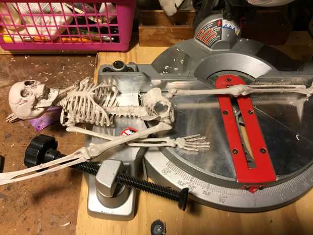 Corte la primera pierna con una sierra pequeña y descubrió que la rodilla plástico sólido, así que decidí hacer el resto de los cortes de la rodilla con mi sierra de inglete, puesto que era allí de todos modos.