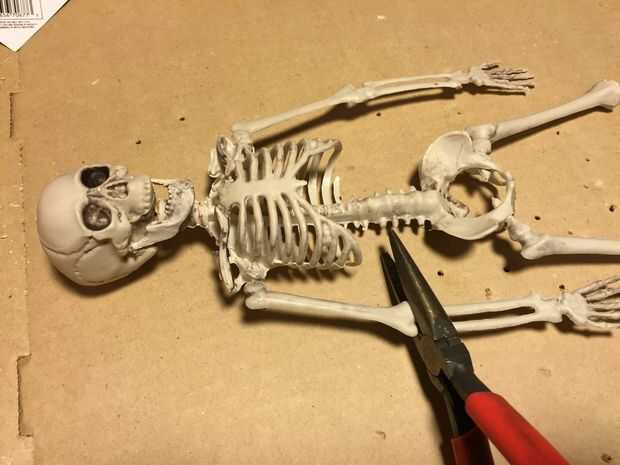 Los codos eran menos de 1/8" de espesor, así que usé mis cortadores de alambre en los. Dependiendo del grosor del plástico de su esqueleto, un cuchillo utilitario o una sierra para metales pudo ser necesaria para los codos, también.