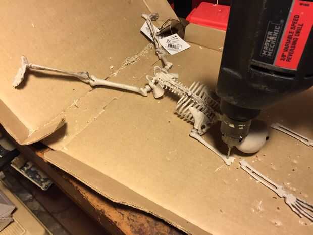 Taladré agujeros con mucho cuidado para los codos, ya que el plástico era tan fino aquí (menos 1/8"). Estaba seguro de no obtener demasiado de cualquier borde, en el caso de torcer el alambre para apretar rip a través de la plástica (esto que me sucedió en una articulación, por lo que sólo hizo un segundo agujero más arriba).