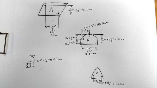No hacer ejercicio, pero tengo todas las medidas. El miembro superior fue 14", el miembro más bajo fue el 18 y el grueso miembro era 3/8". Planeé en tapar 3/4" en una relación y utilizando el resultado, pero la extremidad inferior terminó 36" de largo. así, tiré todo lo que elaboran y hecho tanto superior y más bajo extremidades 24".