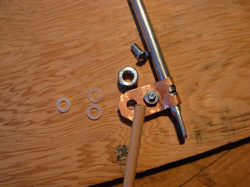 Cortar la espiga 4 piezas, 2 de 8-3/4 pulgadas y dos de 18-7/8. (Muchas de estas fotos muestran una clavija de metal en lugar de una madera. El metal resultado para ser demasiado pesado para la balsa, que en retrospectiva no fue una sorpresa. Tenía que intercambiar hacia fuera pero no te molestes en volver a tomar todas las fotos).