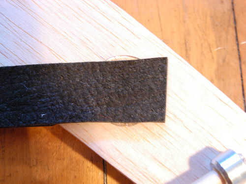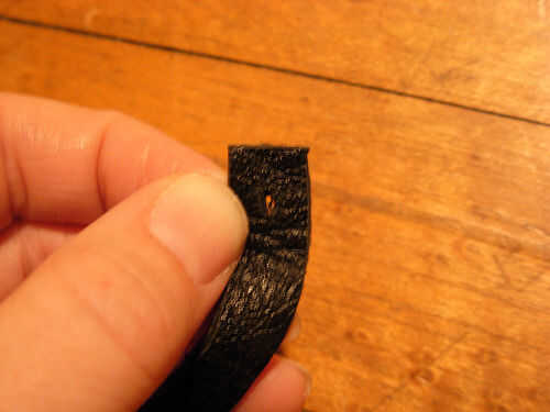 Luego cortar un pedazo de cuero de 12 o 15 pulgadas y puntada uno extremo para el brazalete en forma de una T. El otro extremo se conecte a las alas en balsa/pasador bisagra 2, pero esperar para cortar el agujero para el tornillo hasta que usted puede poner las alas para asegurarse de que la duración es buena.
