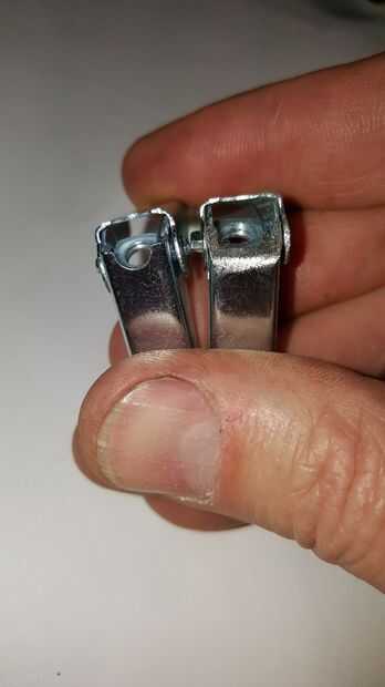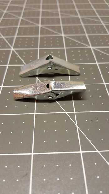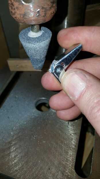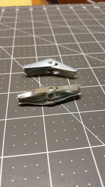 Las bisagras de perno de anclaje no abren todo el camino por el diseño. Necesitaba modificar cada bisagra para quitar algo de material para que la bisagra se abre a una posición más recta. He intentado algunos diferentes métodos como el uso de cortadores de metal de hoja para recortar algún material o doblar el metal con plyers pero el mejor método resultó para ser moler el material hacia abajo. Usé un taladro de mesa con un poco de pulido para eliminar el material extra alrededor de la articulación. Se supone que tengo un molinillo de sobremesa o algo similar también haría el truco. Tarda un par de minutos por junta pero use guantes y protección para los ojos. Pequeños pedacitos de metal son conseguir lanzados apagado el aparato y la bisagra se calienta muy rápidamente. Hablando del calor, moler un poco apagado en un momento, no se apresure. Me doy cuenta de los primeros que hice, la primavera calienta demasiado y perdido su tensión haciendo que la articulación demasiado débil para ser utilizado.