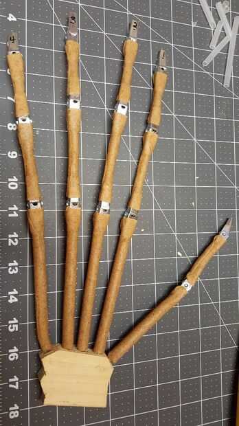 Esto fue bastante sencillo pero desperdiciador de tiempo. Mida su mano y cada empalme para obtener las proporciones para cada dedo tan preciso como sea posible. Usted puede ir con tamaño de en mi caso, estoy aplicando estas manos a un segador de 8 pies de altura para que necesitaba las manos alrededor de 1.35 veces más grande que mi propia. Me sacó las mediciones en un pedazo de papel y permitió más largos de tubería que se extendería en la muñeca. Necesita tener un poco más aquí a incrustar en la muñeca durante el montaje.