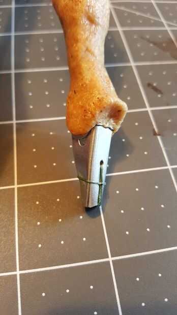 Satisfecho con el conjunto, finalmente cubrí los huesos de punta de dedo con Worbla hasta el final de la construcción.