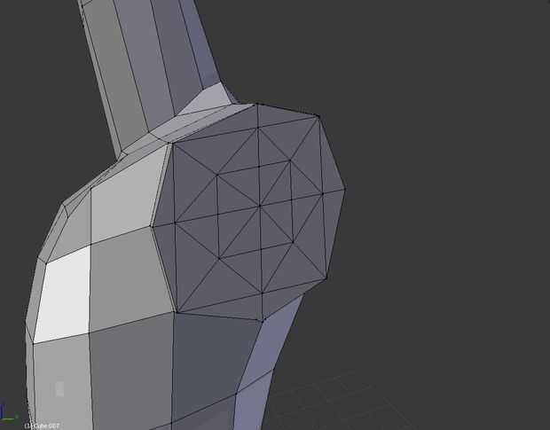 Pulsa K para usar la herramienta cuchilla y trazar líneas entre los vértices cardinales de la cara. Seguir utilizando la herramienta cuchilla para dividir la cara, asegurándose de hacerlo a lo largo de los puntos que son fáciles de recordar.