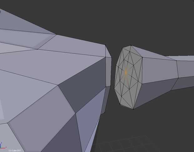 A continuación, utilice el cuchillo en la cara enfrente solo acuchillado en el mismo patrón exacto pero espejada. Seleccione el vértice central de caras y tire hasta que tiene un extremo cóncavo y otro convexo como esta.