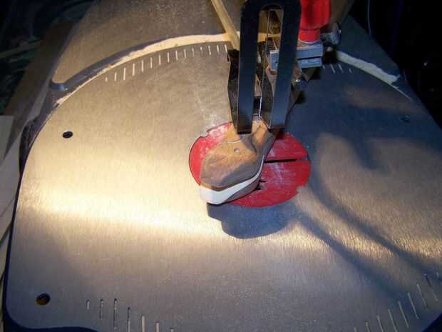 Este corte debe extenderse más allá de los orificios de ojos y contienen un bulbo en el punto más lejano a la parte posterior. La pieza de punta el bulbo impide deslizarse hacia delante y también mantiene la 3ª pieza de deslizarse hacia los lados. El taco de ojo se utiliza para esta pieza en el lugar de la cerradura para que no se deslice hacia fuera o hacia arriba o hacia abajo.