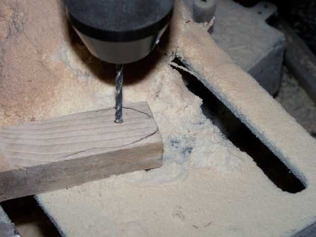 Después han dibujado su patrón a su madera. Ubicar el ojo y taladre un orificio de diámetro de 1/8 de pulgada a través de la madera de un lado a otro.