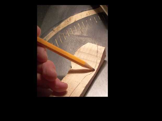 En el paso anterior mencioné que podía cinta la cortada de desecho de la parte superior, en el lugar. Esto es difícil de hacer si ha sólo cortado pequeños rincones como en el dibujo en el paso 2. Es más fácil dibujar el diseño sobre la madera y proceder.
