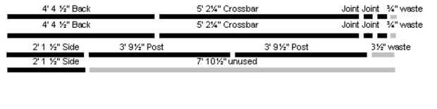 El primer paso para construir tu objetivo es marcar todas las piezas y cortarlos. Abajo está una lista de cortes y lo que se para en la meta. Para obtener la mayoría del uso de sus cuatro tubos de PVC deben consultar la imagen de arriba. Cada línea representa un tubo de PVC. Después de cortar cada parte encontré útil etiquetar qué pieza es hasta más tarde, cuando será más fácil armarla. Las piezas que están juntas son lo que se utilizará para conectar los codos a los accesorios tee.