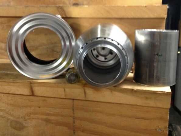 Una pintura de un galón puede con el centro de la parte inferior cortar, y un pedazo corto de tubería para un accesorio de chimenea/conducto agrega gran utilidad a la unidad básica.
