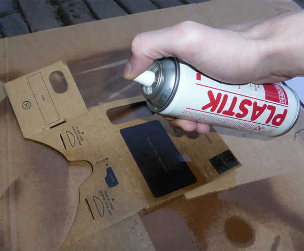 Rociar la placa principal, la pieza frontal de la placa y la nariz en ambos lados, los otros pats no deben hacerse ya que hay material adhesivo en el otro lado.