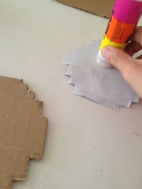 Pegar el elemento en el cartón. Aplique el pegamento bien.