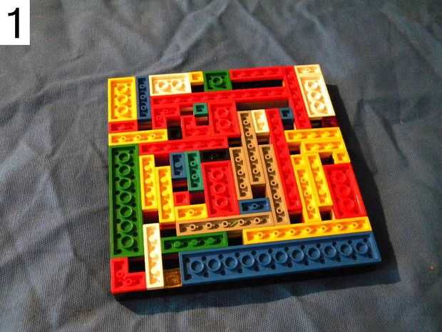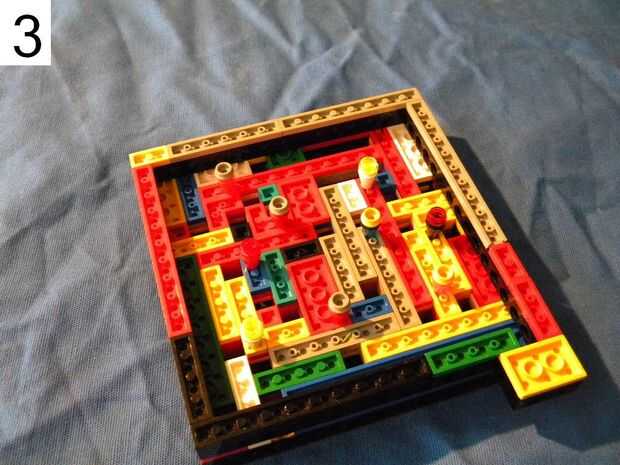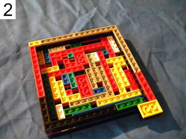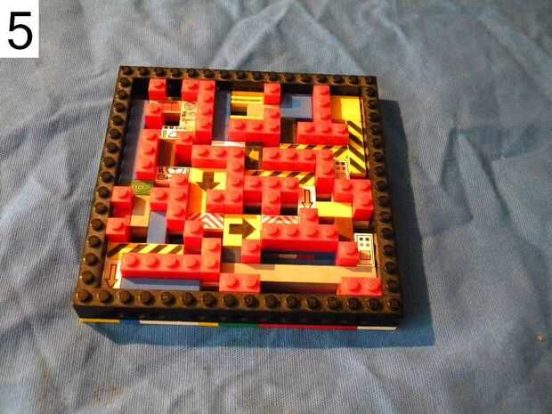 2: Luego en el lado 1 ancho ladrillos y placas de piso 1-ancho. ELA un pequeño depósito para la bola.