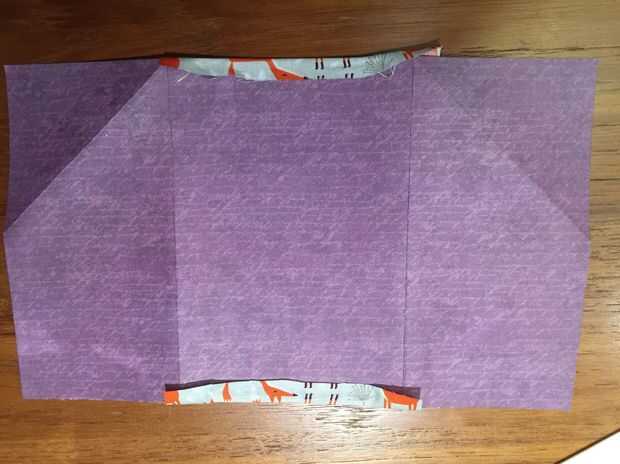 Voltee todo el asunto. Debe haber un poco de superposición donde el interior tela cuelga sobre la parte superior e inferior. Añadir una pequeña tira de pegamento caliente a la parte superior central de la cartulina y pegar a la tela a la cartulina. Repita este paso en la parte inferior de la cartulina.