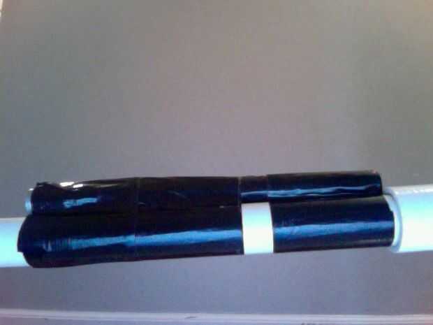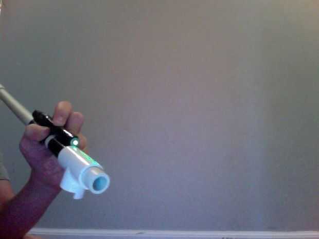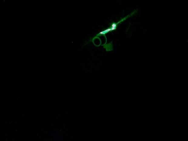 si tienes un láser verde, estoy seguro de que puede simpatizar conmigo cuando digo que es muy molesto tener el pequeño punto verde van vagando por... generalmente en las ventanas de los vecinos. Cuanto más lejos el objetivo es, más difícil es mantener el punto en el lugar. Luego vi "Tesoro nacional" y fue debidamente fascinada por "Láser de la videocámara." de Riley Poole No tener una cámara de video, me vi obligado a hacer con un tubo de PVC de 1/2 que tenía por ahí. Puesto que la tubería estaba desecho, no tengo que hacer ningún corte (por desgracia, también tenía 2 resbalar-en uniones en t pegadas en el tubo). La longitud total es de aproximadamente dos y medio pies y el laser se graba 3.5" de un extremo. Para utilizar, usted simplemente descansa el extremo largo sobre su hombro, con el extremo del láser sobre nivel con su barbilla. El extremo más largo de la tubería ayuda balance cosas y hacerlo más estable. No sé cómo funcionaría un tubo más corto, pero la empuñadura de estilo "bazooka" es perfecta para mí.
