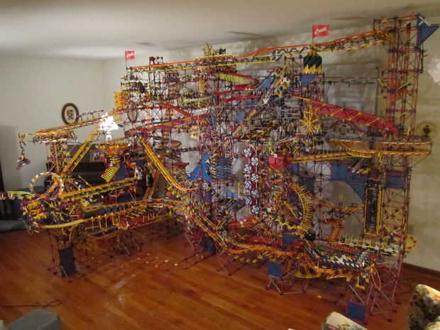 Este es nuestro artilugio de bola más grande y más complejo hasta la fecha. Tomó nueve meses para construir, cuenta con varios elementos únicos, dos ascensores y dieciséis diferentes caminos. Llevó aproximadamente 31.000 piezas constuct y más de 100 libras de K'nex. Fotos individuales de los elementos pueden ser publicadas. Por favor, comentario y quisiera saber qué elementos desea ver de cerca.