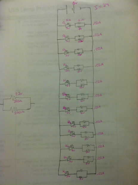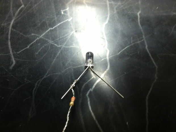 Es bueno al primer plan del circuito de la lámpara antes de empezar a construir la lámpara y a preparar todos los pares de LED-resistor. Para ello calculamos la resistencia necesitada y todas las corrientes y voltajes a través de cada LED y resistencia. Luego Envolvemos la resistencia y el LED como se muestra en la imagen.