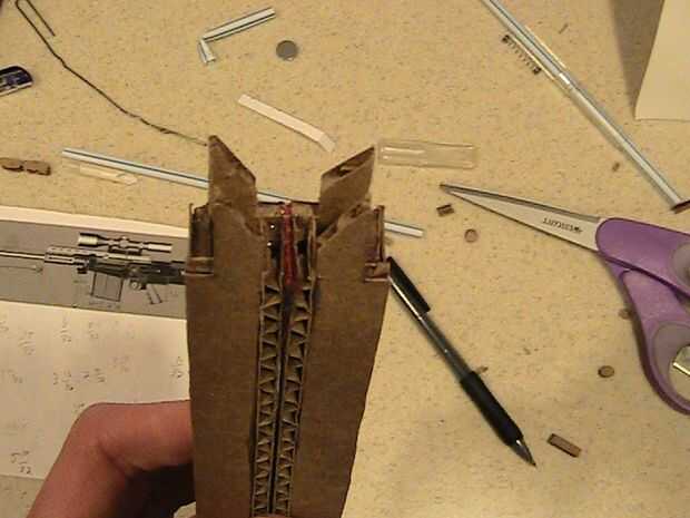 Este es mi rifle de francotirador que hice es genial toma 25 a 30 minutos también si te gusta esto por favor voto gracias.Paso 1:primero hacer esto envuelve para arriba con cinta adhesiva hice 2 capas de cartónPaso 2:entonces debe verse asíPaso 3:hac