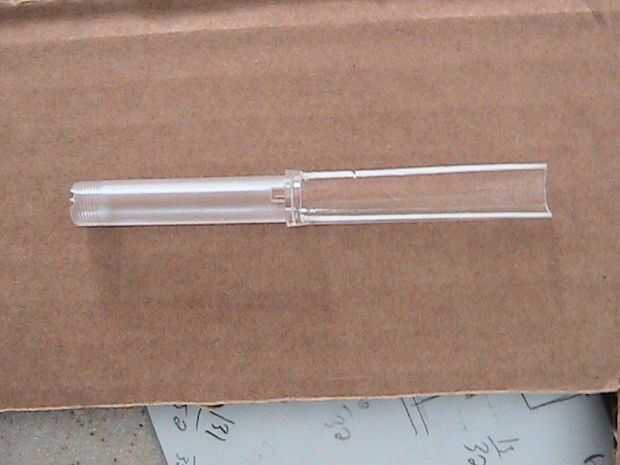 3. Utilice el cuadro cuatro como guía para colocar el tubo de la pluma y la paja en el cañón de la pistola. el tubo de la pluma va en la parte superior, con el paja tubo insertado en su interior. Ambas aberturas están hacia abajo para permitir el compartimiento de carga de un resorte de pluma.
