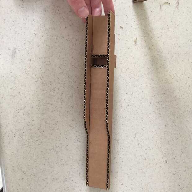 1. Inicio apagado cortando un trozo de cartón como se muestra en imagen una que será capaz de cubrir el mecanismo entero de tiro, como se muestra en la imagen dos.