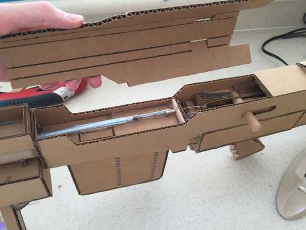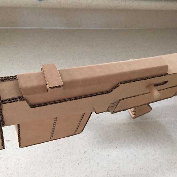 Este es mi rifle de francotirador que hice es genial toma 25 a 30 minutos también si te gusta esto por favor voto gracias.Paso 1:primero hacer esto envuelve para arriba con cinta adhesiva hice 2 capas de cartónPaso 2:entonces debe verse asíPaso 3:hac