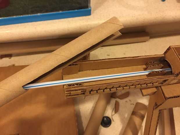 1. Extender el cañón usando pajitas pegando los extremos. Seguir extendiendo mientras realizas más y más el barril (ver fotos 1 y 2).