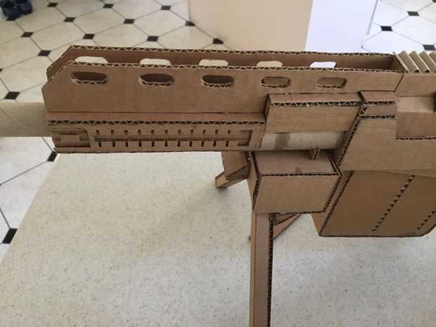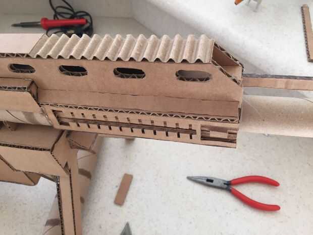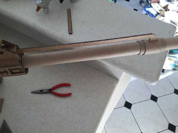 6. Una vez que la pistola está en toda su longitud, completan el proyecto mediante la creación de un pedazo de spoiler que va pegado al final del cañón.