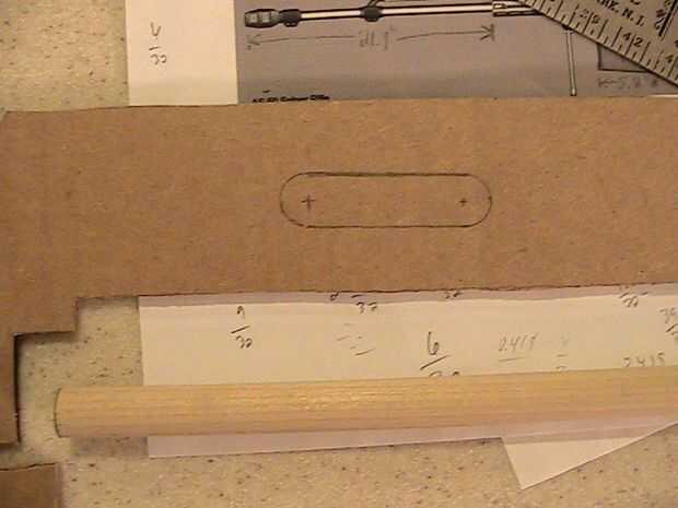 3. Para hacer un slider para el perno de la recarga, cortar una forma de rectángulo más redonda en el lado de la cartulina. Utilice el perno de recarga para trazar dos círculos y luego conectarlos mediante la regla.