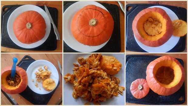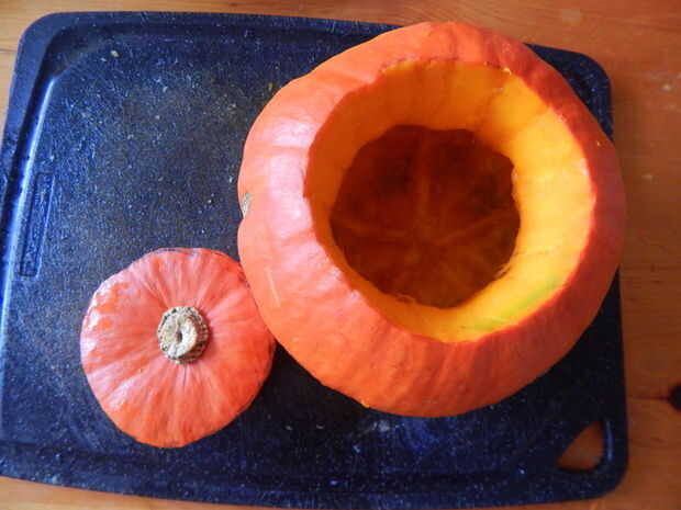 4. Sazonar la parte interior de la calabaza con sal y pimienta y reservar.