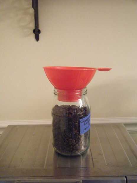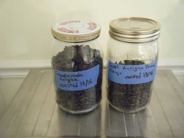 Una vez que termines con todo eso, volcar el café en el colador. Llevarlo fuera y muévelo alrededor por lo que la mayoría de la paja y el vapor sale. Volcar todo en la bandeja para hornear galletas, extendiendo uniformemente. Cuando está a temperatura ambiente, volcar en el frasco de vidrio con embudo (no quieres café caliente sellado en un recipiente porque el vapor puede dañarlo). Utilizando cinta de pintor, etiquetar el frasco con el nombre de la fecha que usted había asado y café. Generalmente usted querrá dejar el resto de café por lo menos 24 horas, pero a veces requiere más o menos. La bolsa de café puede afirmarlo.