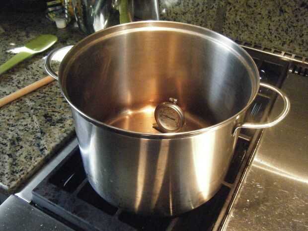Poner la olla en la estufa a fuego medio alto. Poner el termómetro en la parte inferior de la olla. Asegúrese de que el filtro se arregla la forma que desee. Cuando el bote llega a 200 grados Fahrenheit, sacar el termómetro con las manoplas y añadir el café. Pequeñas cantidades son los mejores. 1/4 a 1/2 de libra de tamaño es bueno. Generalmente globo ocularlo (aproximadamente un tercio a una mitad de una bolsa de una libra de peso), pero se puede medir Si eres ese meticuloso (o apenas menos de un cochino que yo. Mayoría de la gente mide por peso, a por cierto.) Encender el ventilador si no lo has hecho ya. Probablemente tendrás que subirlo más alto, ya que el humo loco hacia el final. Nota: Asegúrese de no encender el calor muy bajo, o bien acabará 'cocinar' las habas, que quita su sabor. Encender demasiado alto no es grande, ya sea (es más fácil de quemar la parte exterior de los granos), generalmente es mejor mejor que demasiado baja.