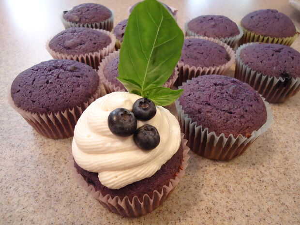arándano de arándano Blueberry! ¿Necesito decir más? Estos cupcakes son elaborados con una mezcla de muffin de arándanos, relleno con una mermelada casera de arándanos y con un queso crema frosting (ligeramente condimentado con algo de zumo de aránda