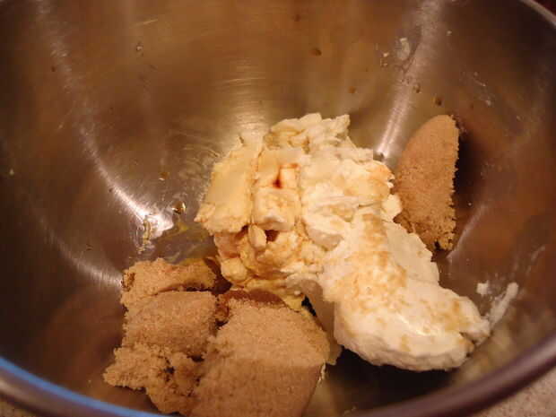 Crema al queso de cabra, azúcar morena y vainilla X a velocidad media (4 minutos)