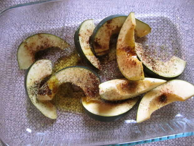 Añadir la sal, pimienta, Chile en polvo y orégano y un glug de aceite de oliva y mezcla bien todo junto con las manos, asegurándose de que todo está cubierto. Si tienes piezas que se seca, añadir un poco de aceite de oliva más. No quieres que pegue a la sartén.