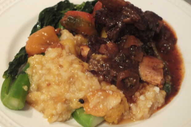 1 taza carnaroli o arroz italiano (este grano super corto cuando agitó con líquido deja hacia fuera un almidón aspecto cremoso sin la crema y las calorías!)