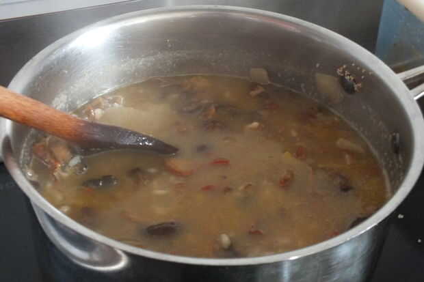 Coloque la tapa entreabierta en la olla para evitar que el líquido se evapora demasiado rápido.