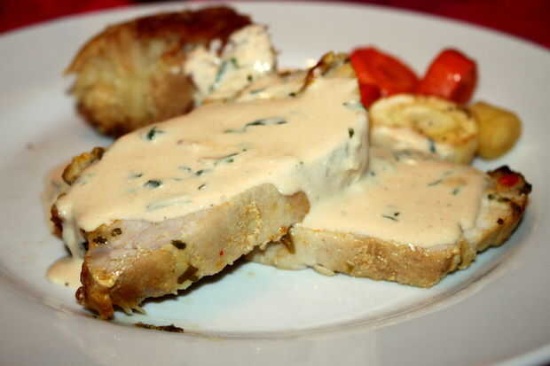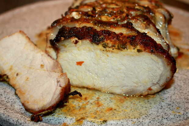 una alternativa de vacaciones deliciosas a la Turquía omnipresente, con el mínimo esfuerzo.Paso 1: Carne de cerdo preparación Colocar una parte de grasa de lomo de cerdo sin hueso para arriba en una bandeja para hornear engrasada.Espolvorear la carne