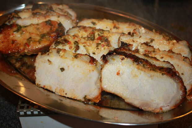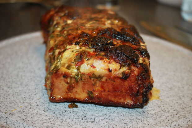 una alternativa de vacaciones deliciosas a la Turquía omnipresente, con el mínimo esfuerzo.Paso 1: Carne de cerdo preparación Colocar una parte de grasa de lomo de cerdo sin hueso para arriba en una bandeja para hornear engrasada.Espolvorear la carne