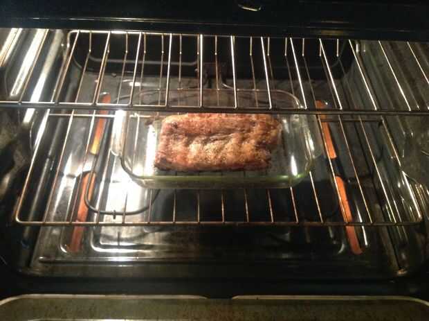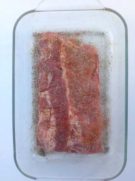 Coloque la costilla en su plato de la hornada (recomiendo hornear, hornear de china es bien demasiado) con el lado de la carne hacia abajo.