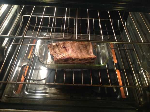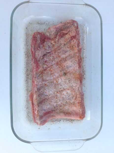 Coloque el plato con la costilla especiado con el lado del hueso hacia abajo, hornear durante 20 minutos.