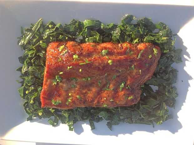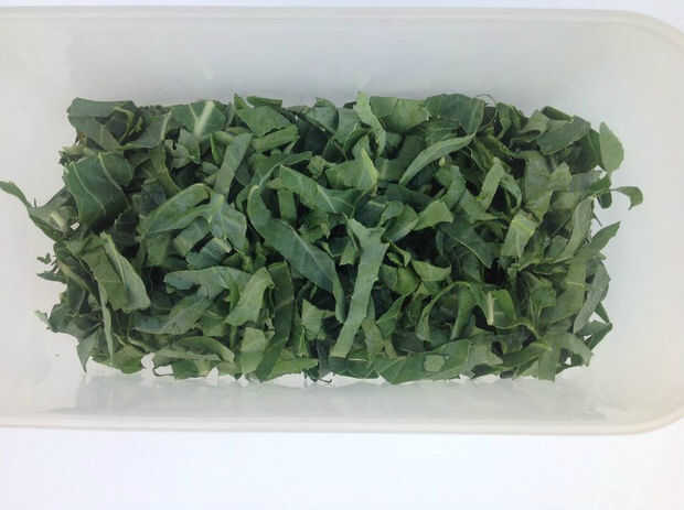 Aquí mientras que la costilla era tostado, tomé, lavada y picada col verde hojas (no tallos en todos que es amargo y leñosas), removerlo frito y sirve la costilla en la cama de él.