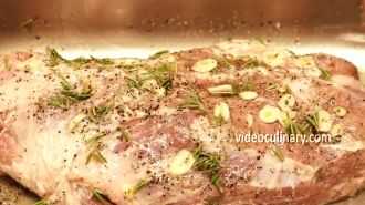 Cortar 5-6 clavos de olor o ajo. Añadir las hojas de unas ramitas de Romero, 2 cucharaditas de sal, 1 cucharadita de pimienta negra y 70 gramos de aceite.