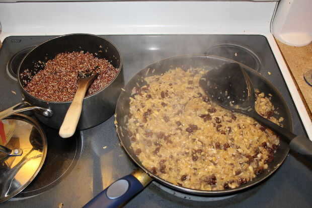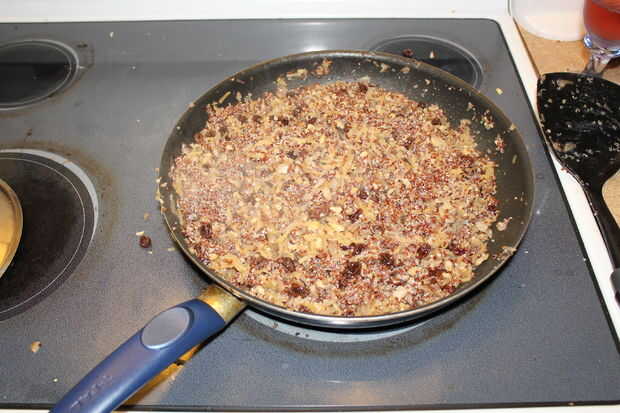 Retirar del fuego y combinar la quinua con el resto del relleno