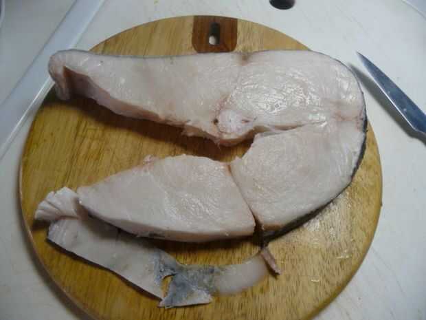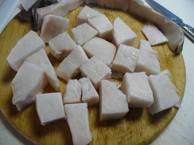 De la piel, deshuesar y cortar la lubina en grandes trozos de 1"- 2".