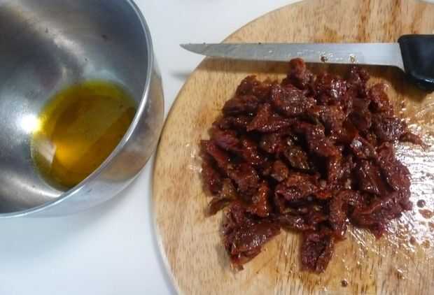 - 3/4 taza sol secar tomates en aceite (probar esta deliciosa receta casera cuando los tomates son abundantes!)