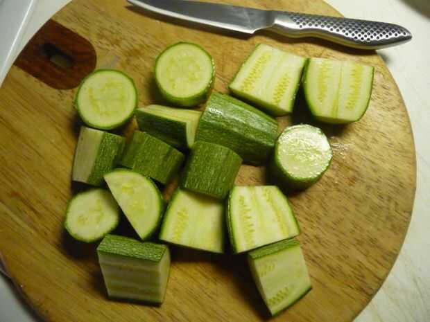 Lave los calabacines y cortar en trozos de 1-2". Ponga a un lado.